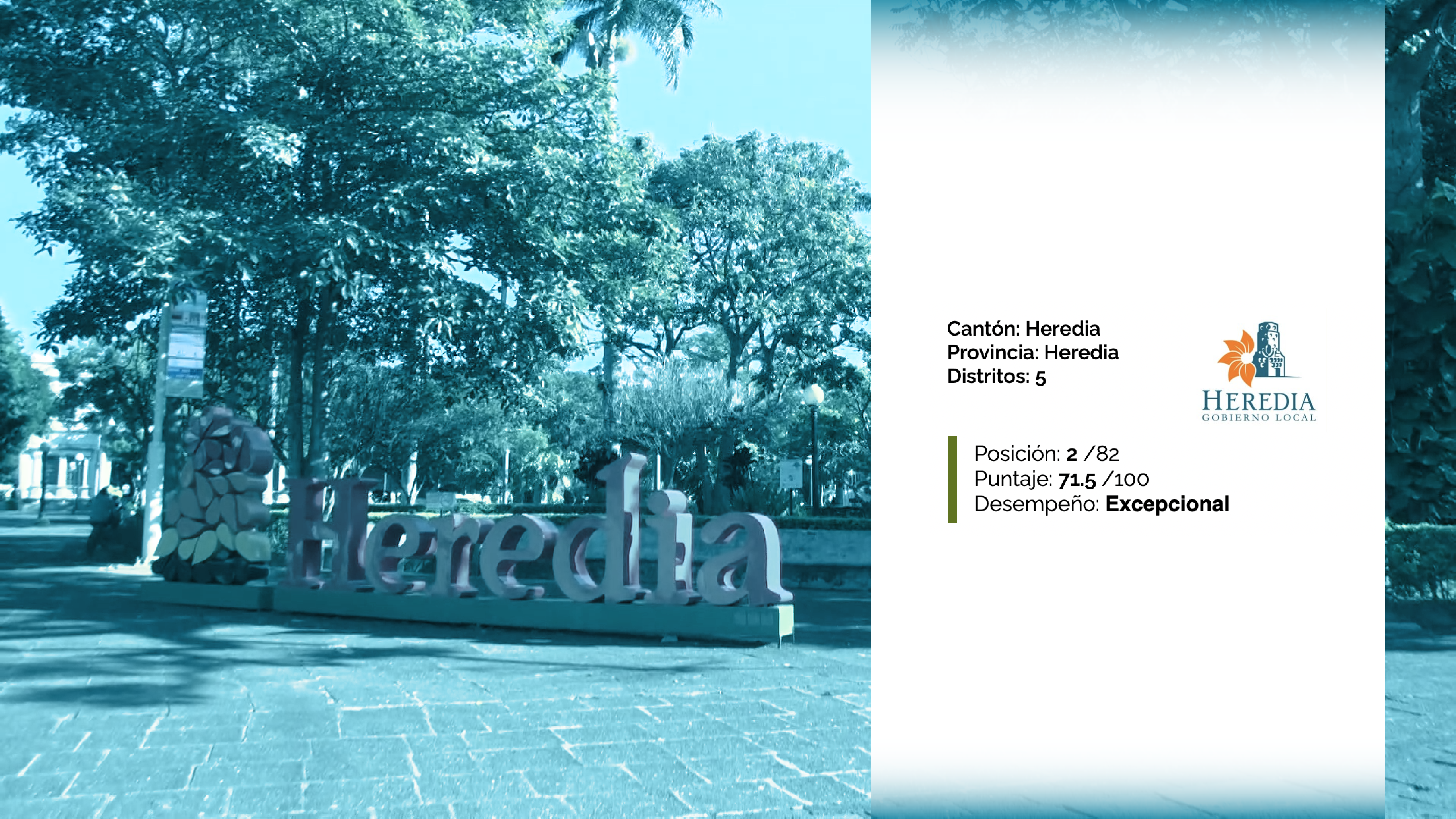 Se trata de los cantones de Montes de Oca que obtuvo el puntaje más alto con un 72,1; seguido de Heredia con un 71,5; Belén con 70,1; Cartago alcanzó un 68,7; Escazú se destaca con un 68,3; Flores obtuvo un 68; Alajuela un 67,4. Le siguen Moravia en el octavo lugar con un desempeño de 66,5; San Pablo con un 66,3; Curridabat en el lugar 10 con un 65,8; La Unión con 64,7 y por último Santo Domingo con un 64.6. Vea el Índice de Competitividad aquí: Inicio - Índice de Competitividad Nacional (icn.cr).
