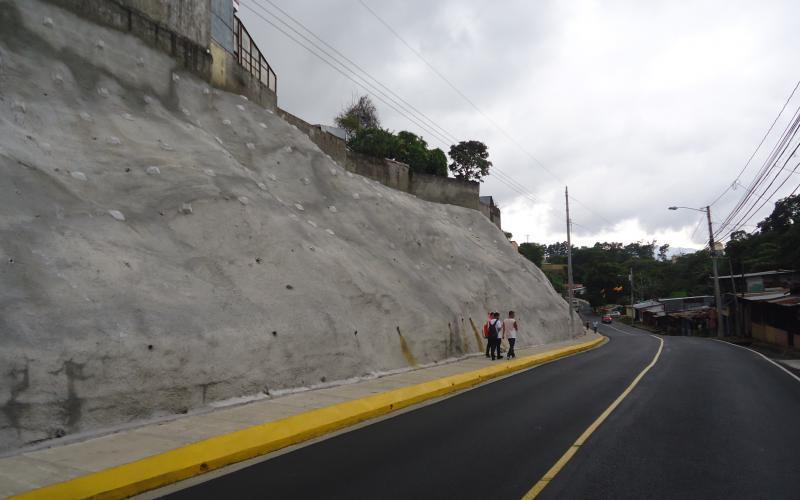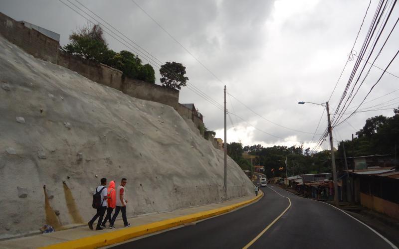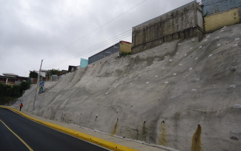 El Municipio finalizó las obras de construcción de muro de contención que da estabilidad, soporte y elimina el riesgo de deslizamiento del talud ubicado en esta zona. Estos trabajos comprenden el reforzamiento del terreno mediante la perforación con varillas de acero y su recubrimiento con concreto para mitigar la erosión natural.