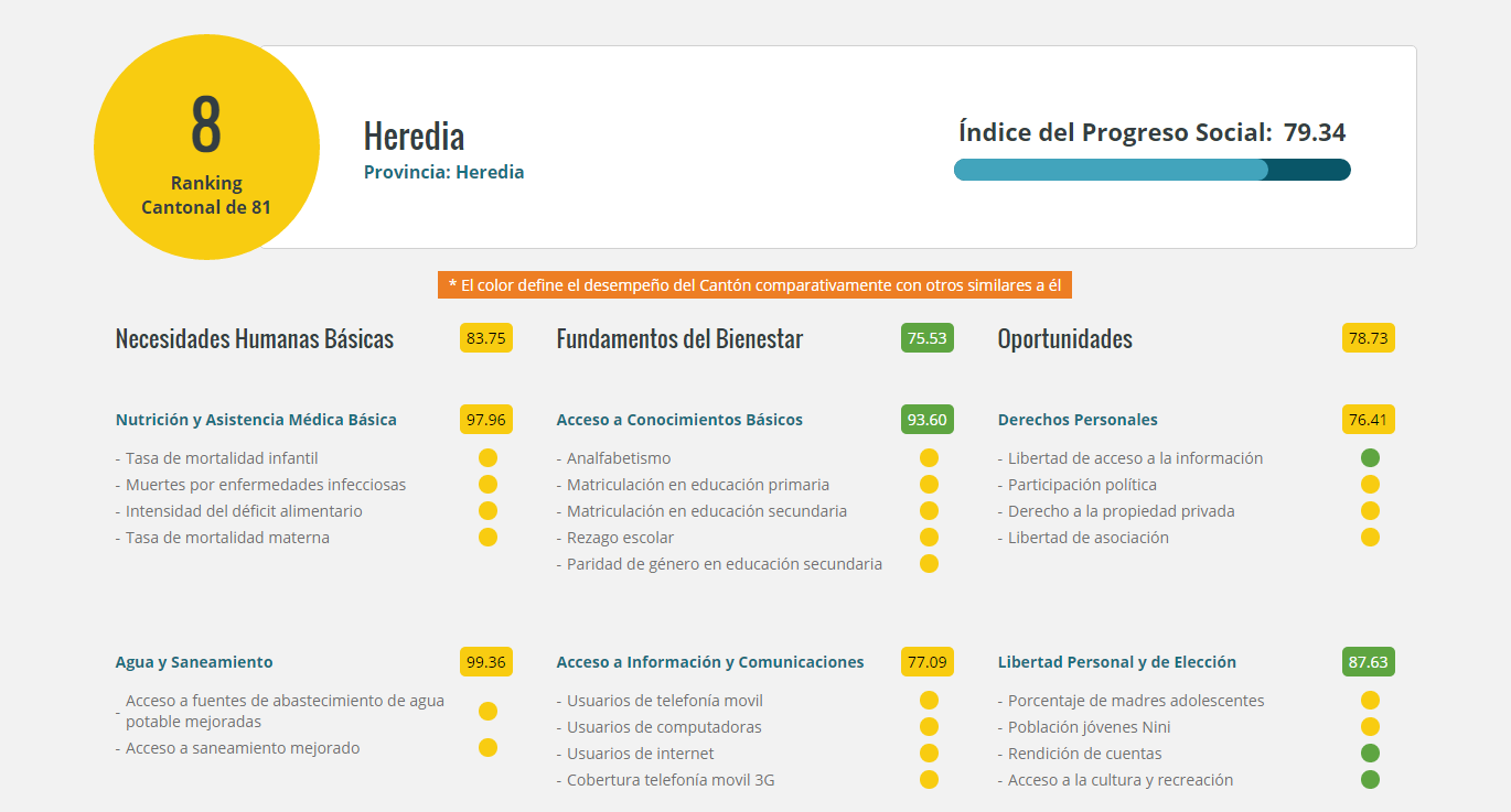 El pasado lunes 07 de marzo se realizó de la presentación del Índice de Progreso Social Cantonal, herramienta para potenciar el progreso social, desarrollo humano y competitividad del país; el cual refleja condiciones muy favorables para el cantón de Heredia y lo posiciona en el puesto número ocho a nivel nacional.