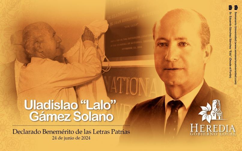 El pasado lunes 24 de junio los diputados aprobaron reconocer con el título de Benemérito de las Letras Patrias al exministro de Educación al señor Uladislao “Lalo” Gámez Solano, proyecto propuesto por el presidente legislativo, Rodrigo Arias, y la legisladora del PLN Kattia Rivera.