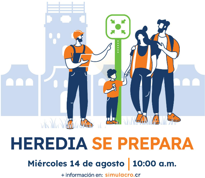 La Municipalidad de Heredia informa a la ciudadanía que el próximo 14 de agosto, se llevará a cabo el 6to Simulacro Nacional de Evacuación en diversos puntos del cantón.