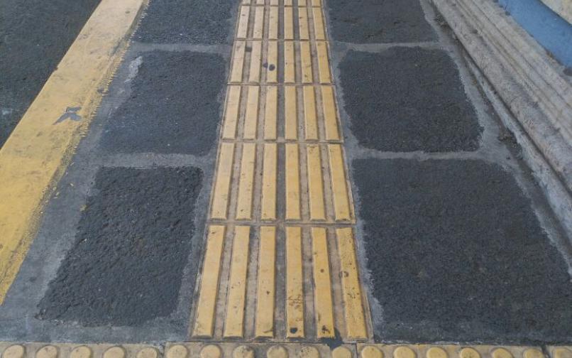 En la construcción del corredor en aceras con el ancho mínimo de 1.20 metros, la loseta guía se ubicará en el medio de dos filas en las que toman lugar las piedras andesitas.