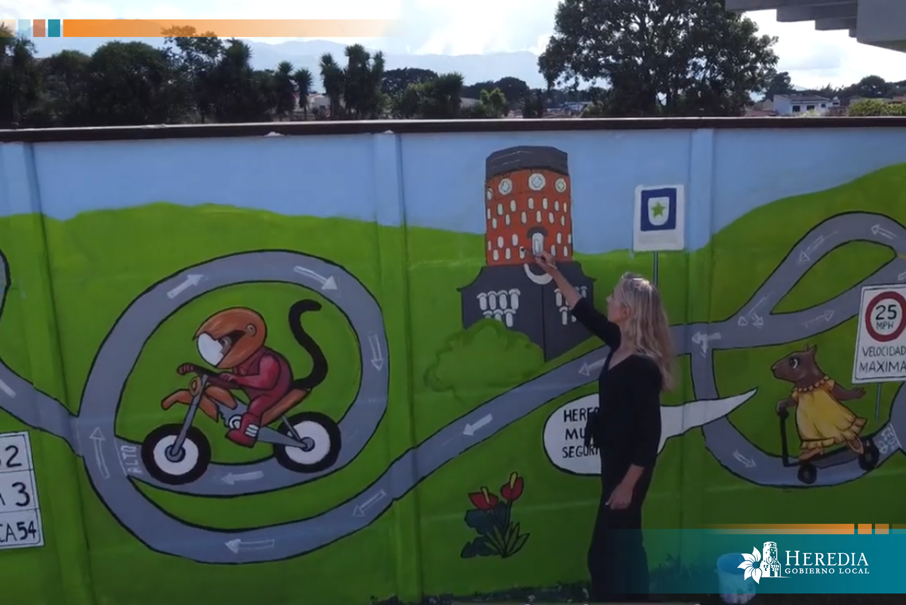 La Municipalidad de Heredia llevó a cabo una serie de murales de pared y de piso en la Calle del Rey, ubicada en Mercedes Norte, como parte de una iniciativa orientada a promover la seguridad vial y la movilidad sostenible en la niñez.