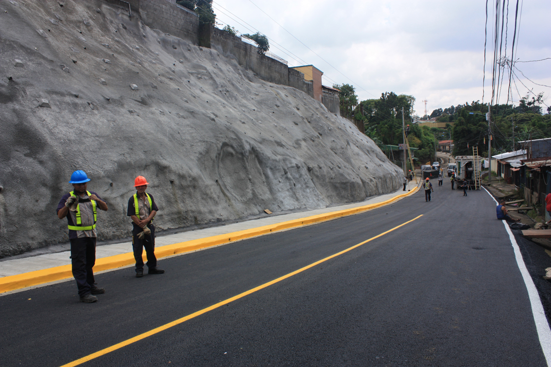 El Municipio finalizó las obras de construcción de muro de contención que da estabilidad, soporte y elimina el riesgo de deslizamiento del talud ubicado en esta zona. Estos trabajos comprenden el reforzamiento del terreno mediante la perforación con varillas de acero y su recubrimiento con concreto para mitigar la erosión natural.