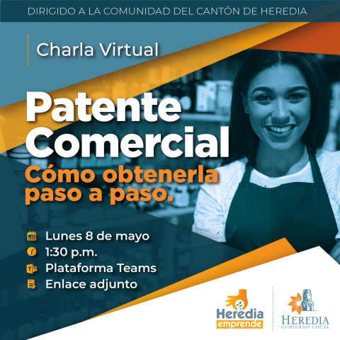 ¿Quieres formalizar tu negocio y no sabes por dónde empezar? ¡La Municipalidad de Heredia te ayuda! Como parte del programa Heredia Emprende, estaremos brindando una charla en la que te enseñaremos el paso a paso para generar una patente comercial. ¡No te pierdas esta oportunidad de hacer crecer tu emprendimiento de manera legal y transparente!