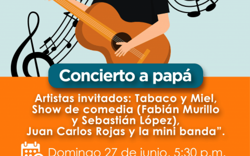 Concierto con las agrupaciones heredianas Tabaco y Miel y Juan Carlos Rojas y la Mini Banda, durante la actividad contaremos con la participación de los humoristas Fabian Murillo y Sebastián López.