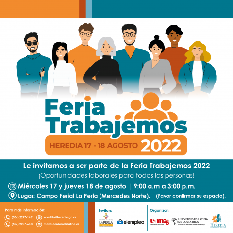 La Municipalidad de Heredia les invita a participar en la “Feria Trabajemos”, este será un punto de encuentro entre empleadores que buscan personal y el talento de nuestra provincia.