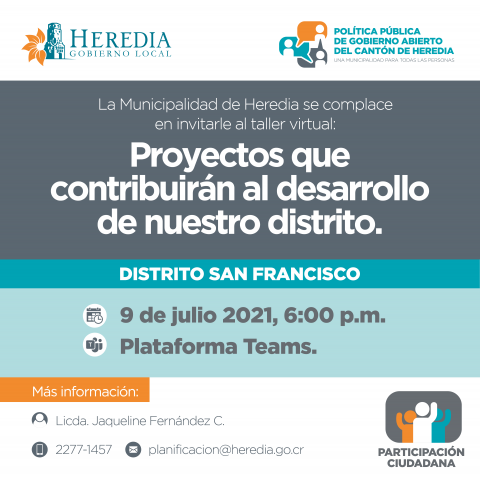 Taller virtual dirigido a las comunidades con el fin de que propongan ideas para proyectos que contribuirán al desarrollo de cada distrito.