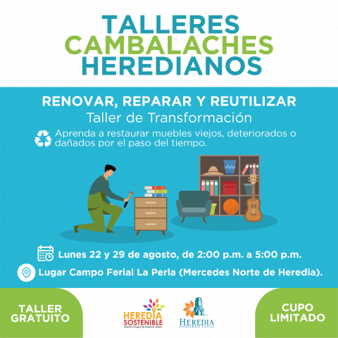 - Taller de restauración de muebles para crear artesanías. Lunes 22 y 29 de agosto de 2:00pm a 5:00pm