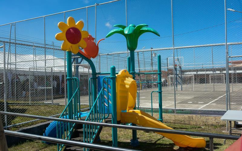 Las mejoras realizadas dan cobertura a la construcción de una nueva caseta de seguridad, nueve camerinos, una cancha abierta, una cancha para fútbol sala, una cancha para baloncesto, espacio para refrigerios, máquinas para ejercicios y parque recreativo para niños.