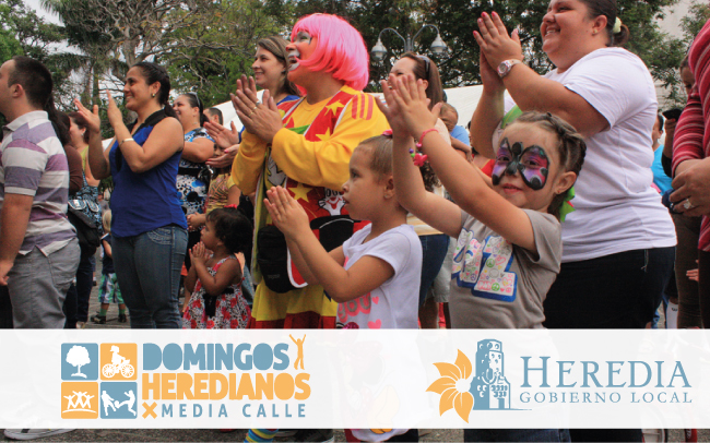 Una vez más, el Parque Central de Heredia se convertirá en escenario de música, juegos, bailes y colores por el regreso de los Domingos Heredianos por Media Calle. Esta actividad organizada por la Municipalidad de Heredia cuenta con el apoyo del Comité Cantonal de Deportes y Recreación.
