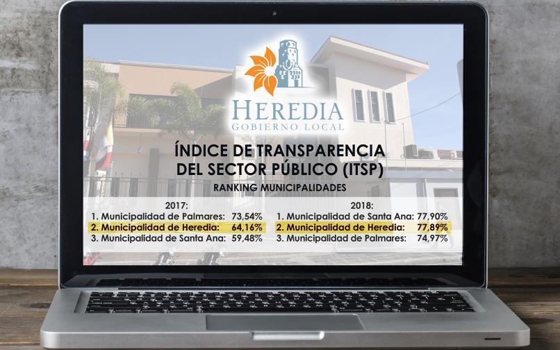 El Gobierno Local de Heredia se mantiene en el segundo lugar de la tabla de posiciones según el Índice de Transparencia en el Sector Público Costarricense (ITSP), con una puntuación de 77.89 de una base de 100, a tan solo una centésima de diferencia con el primer lugar.