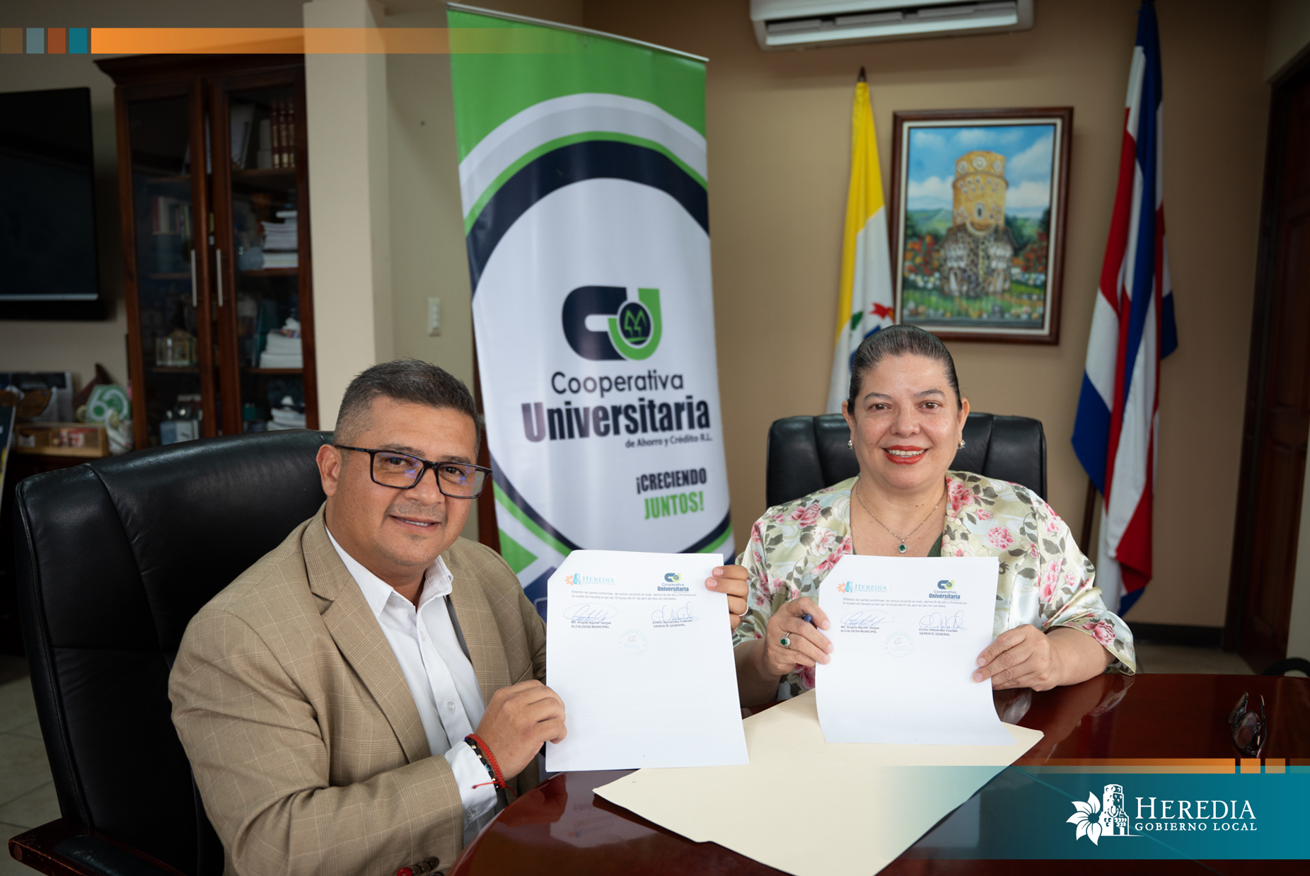 La Municipalidad de Heredia y la Cooperativa Universitaria de Ahorro y Crédito R.L. (COOPEUNA) suscribieron un Convenio Marco de Cooperación con el objetivo de establecer una alianza estratégica orientada al desarrollo de proyectos en beneficio de la población herediana.