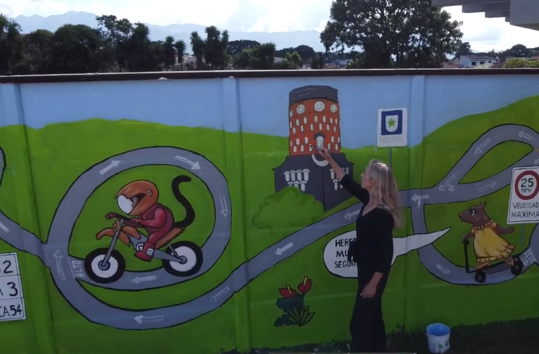 La artista profesional rusa Alisa Aster Zhiltsova resaltó el compromiso de la comunidad y de la niñez con las ideas desarrolladas, y además impartió talleres de pintura con temas como las normas de tránsito de manera creativa y participativa.