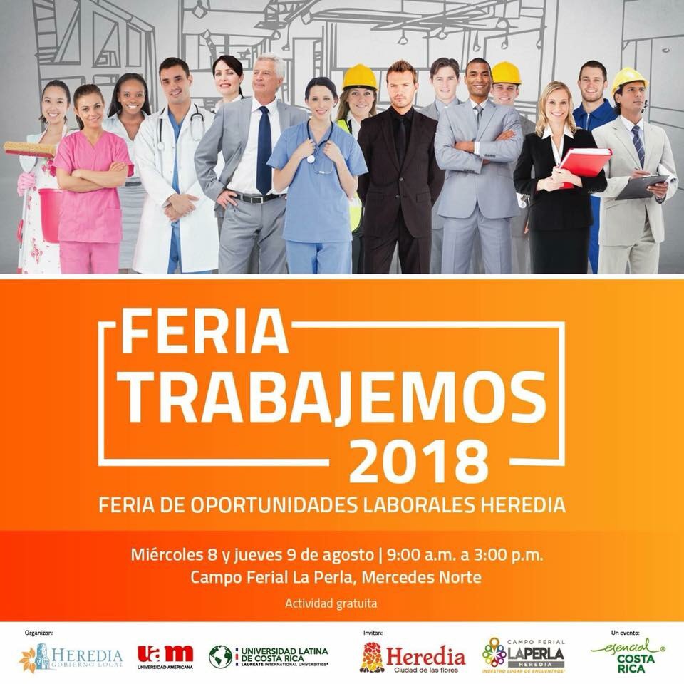 Aquellos estudiantes, graduados y público en general que buscan una oportunidad para colocarse en el mercado laboral, podrán aplicar por uno de los 1.500 puestos de trabajo que ofrecerán 52 empresas en la Feria de Empleo Trabajemos 2018, organizada por la Universidad Latina de Costa Rica, la Universidad Americana (UAM) y la Municipalidad de Heredia.